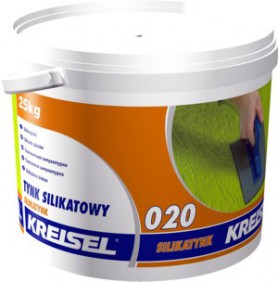 SILIKATYNK 020 - Tynk ten produkowany jest na bazie szkła wodnego potasowego, powoduje to podwyższenie pH, dzięki czemu wyprawa ta jest wysoce odporna na działanie alg, glonów, grzybów itp., czyli agresji biologicznej. Charakteryzuje się też wysoką paroprzepuszczalnością oraz przepuszczalność CO2, porównywalną z tynkami mineralnymi, dzięki czemu produkt ten szczególnie predestynowany jest do systemów z wełną mineralną. Tynk ten jest też hydrofobowy oraz elastyczny. Wyroby oparte na szkle wodnym wiążą się z materiałem podłoża (skrzemianowanie), co podwyższa ich odporność na odrywanie. Po stwardnieniu wodo i mrozoodporny. Dostępny w 3 granulacjach 1,5; 2,0 i 3,0mm, fakturze "baranka" i kornika (drapanej) w 203 kolorach, wiaderkach 25kg.